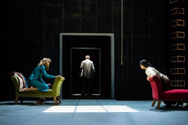 Au centre de la pièce, discrètement éclairé, un sourire caustique aux lèvres, mordant, blessant, ses jambes allongées, croisées devant lui, il scande du pied un inaudible couplet. Il caresse son menton, entrouvre les lèvres puis les referme, sans parler. Alors dépliant ses jambes lentement il se lève, accusateur, scrute Blaise qui cesse son va et vient, puis les observe un par un, les dévisage comme s'il cherchait à les reconnaître, contourne le bureau d'un pas mesuré, empoigne le cendrier et le jette violemment. Des éclats de verre parsèment le sol. Il se dirige vers Luc, qui prit d'une tremblement convulsif, tente en vain de reculer, mains plaquées au sol. Il redoute les éclats du patriarche qui maintenant le pointe du doigt après avoir repoussé brutalement cette mèche blanche qui le distingue entre tous. Son front ridé plisse sous la fureur.